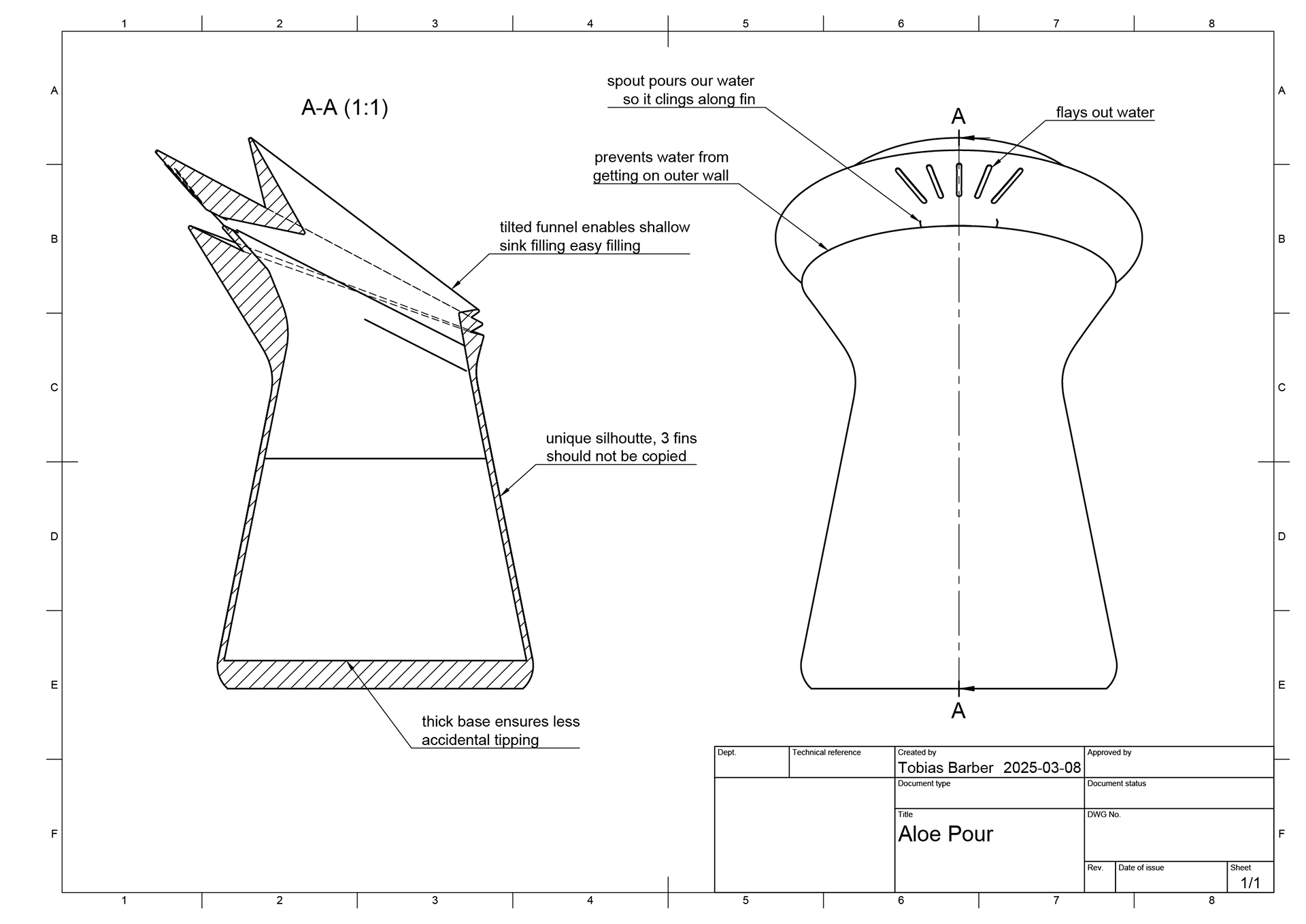 In this studio project, I was challenged to design a unique watering device for a specific demographic. I learned about rendering, creating concepts and lots of fluid simulations. I call it Aloe Pour.